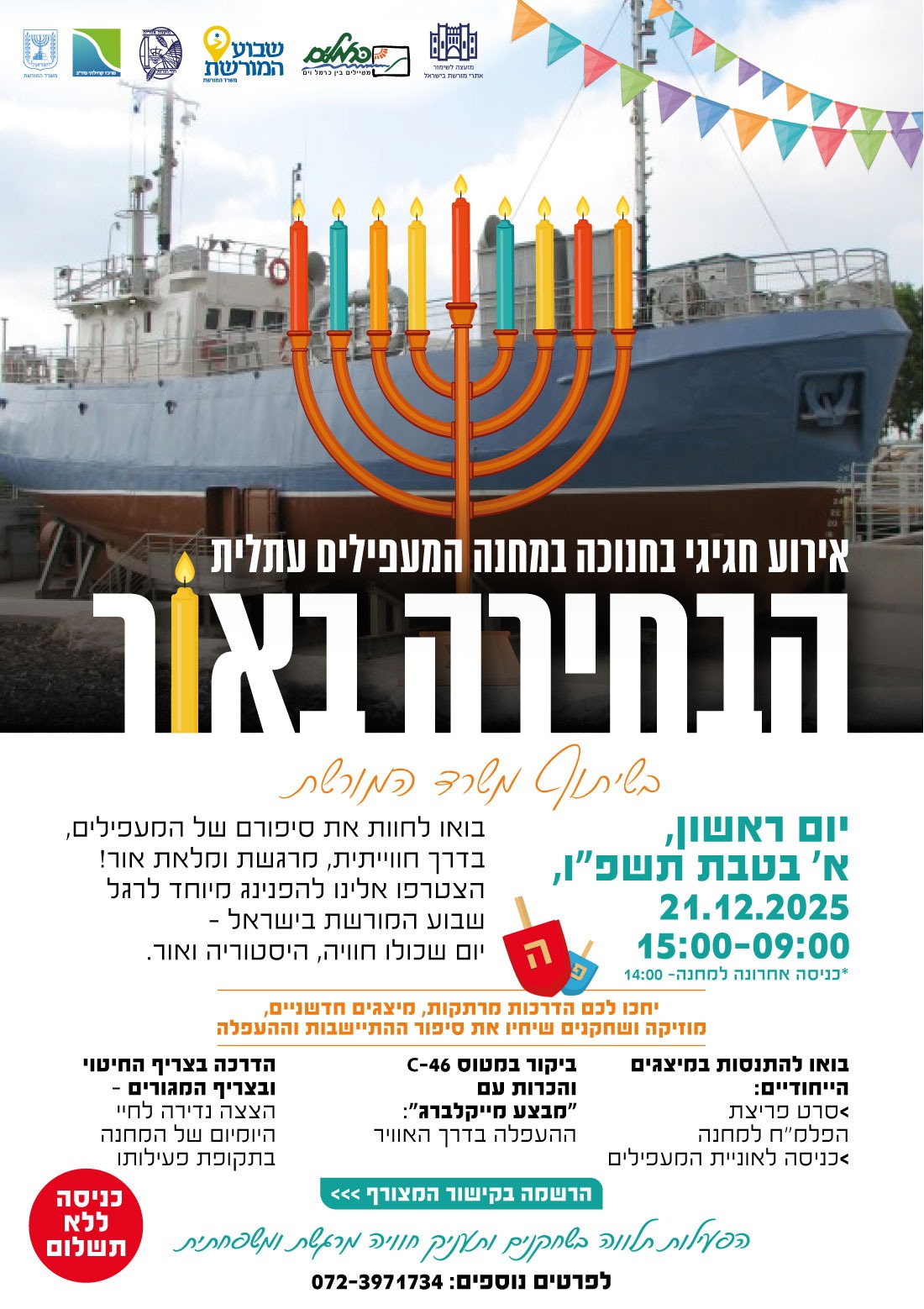 הבחירה באור: אירוע חנוכה חגיגי במחנה המעפילים בעתלית